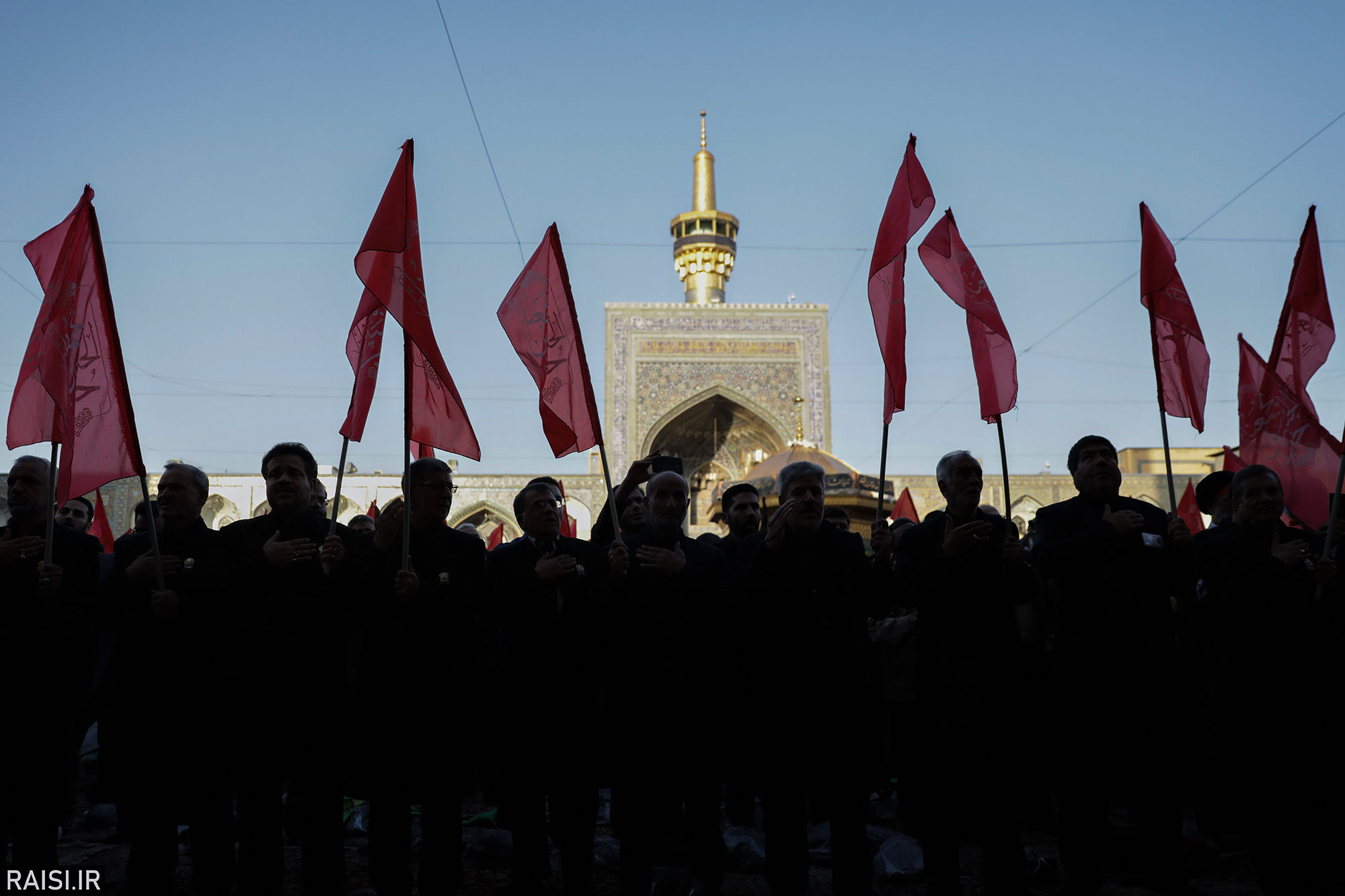 مراسم بدرقه خادمان و زائران اربعین حسینی در صحن انقلاب اسلامی حرم مطهر رضوی با حضور تولیت آستان قدس رضوی و جمعی از مسئولان استانی برگزار شد.